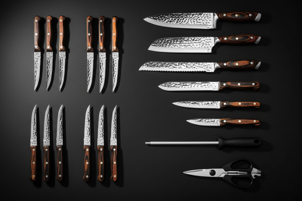 Des couteaux pensés pour la découpe nette, l’équilibre en main et des finitions premium. Une expérience “couteau pro” au quotidien.