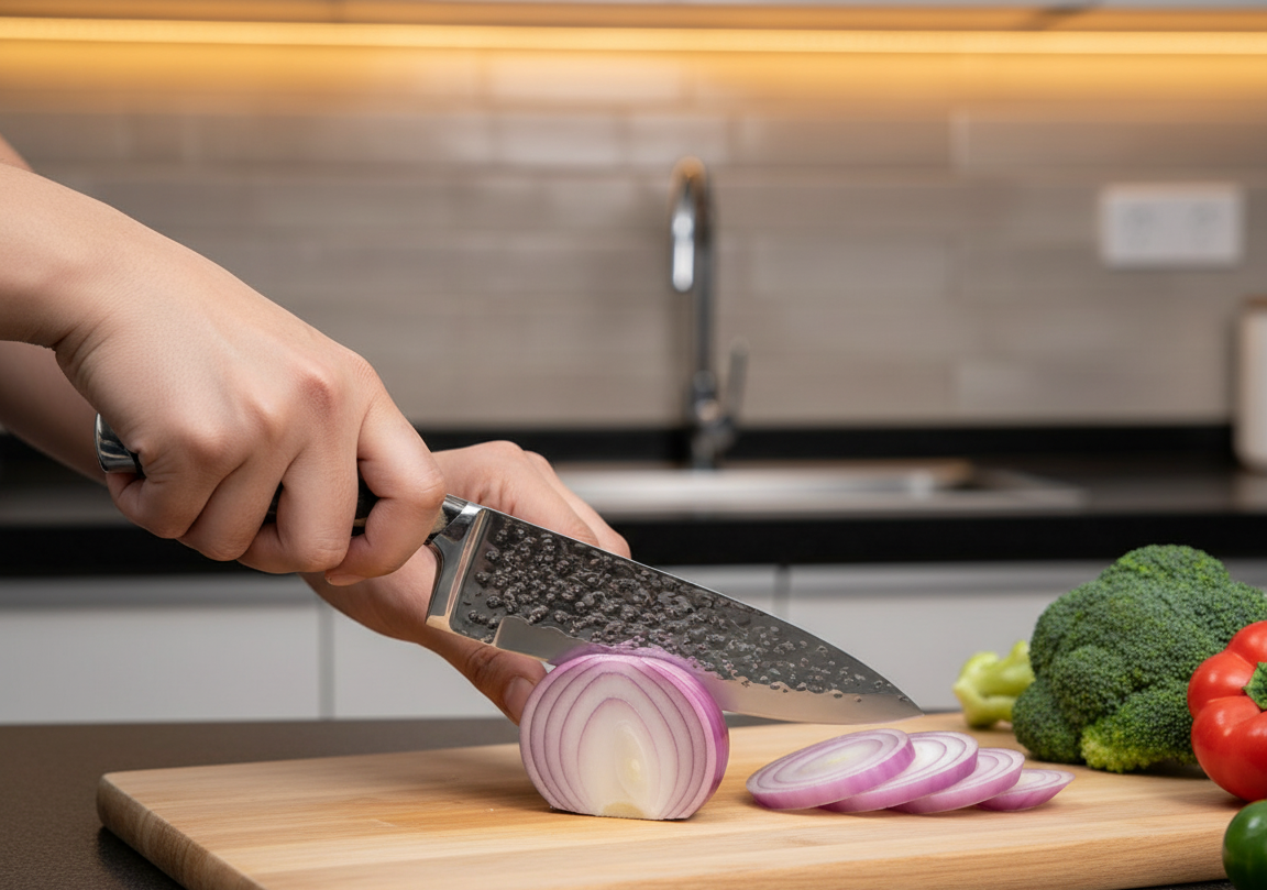 • Nakiri : lame plate conçue pour les légumes — coupe nette sans écraser.
