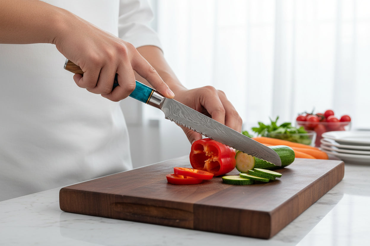 Chez Kensei Kaizen™, chaque couteau est pensé pour ceux qui aiment sentir la lame glisser, contrôler chaque découpe, et prendre fierté dans ce qu’ils préparent.