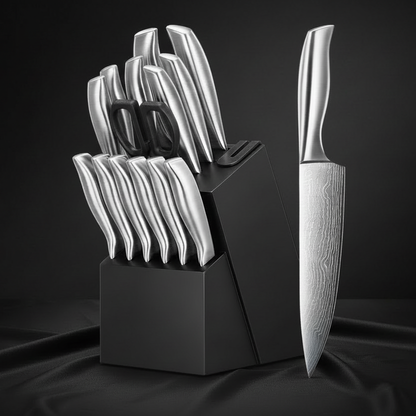 Ensemble de 15 Couteaux Kensei Kaizen™ avec Bloc Auto-Affûtant