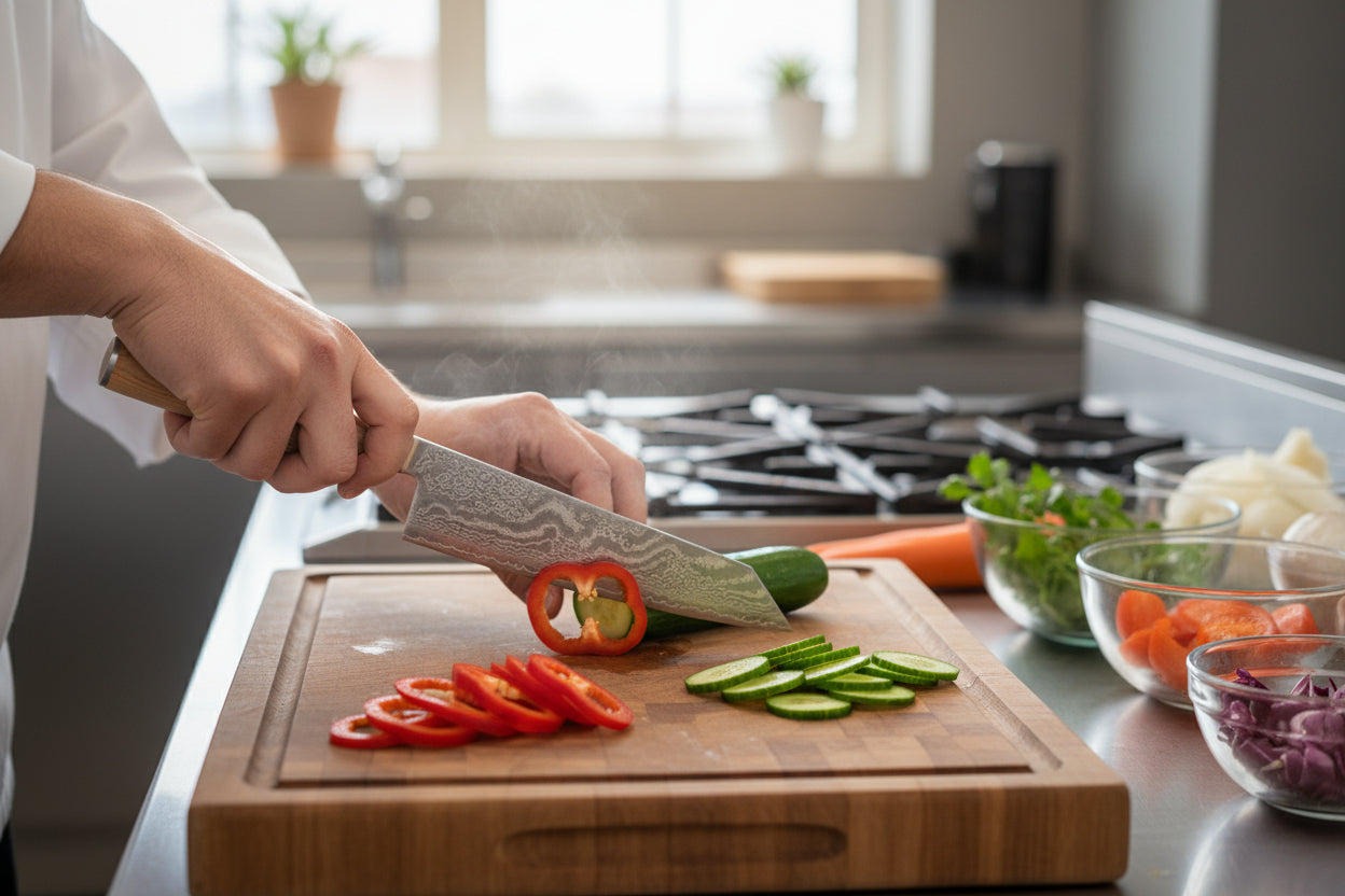 Chez Kensei Kaizen™, chaque couteau est pensé pour ceux qui aiment sentir la lame glisser, contrôler chaque découpe, et prendre fierté dans ce qu’ils préparent.