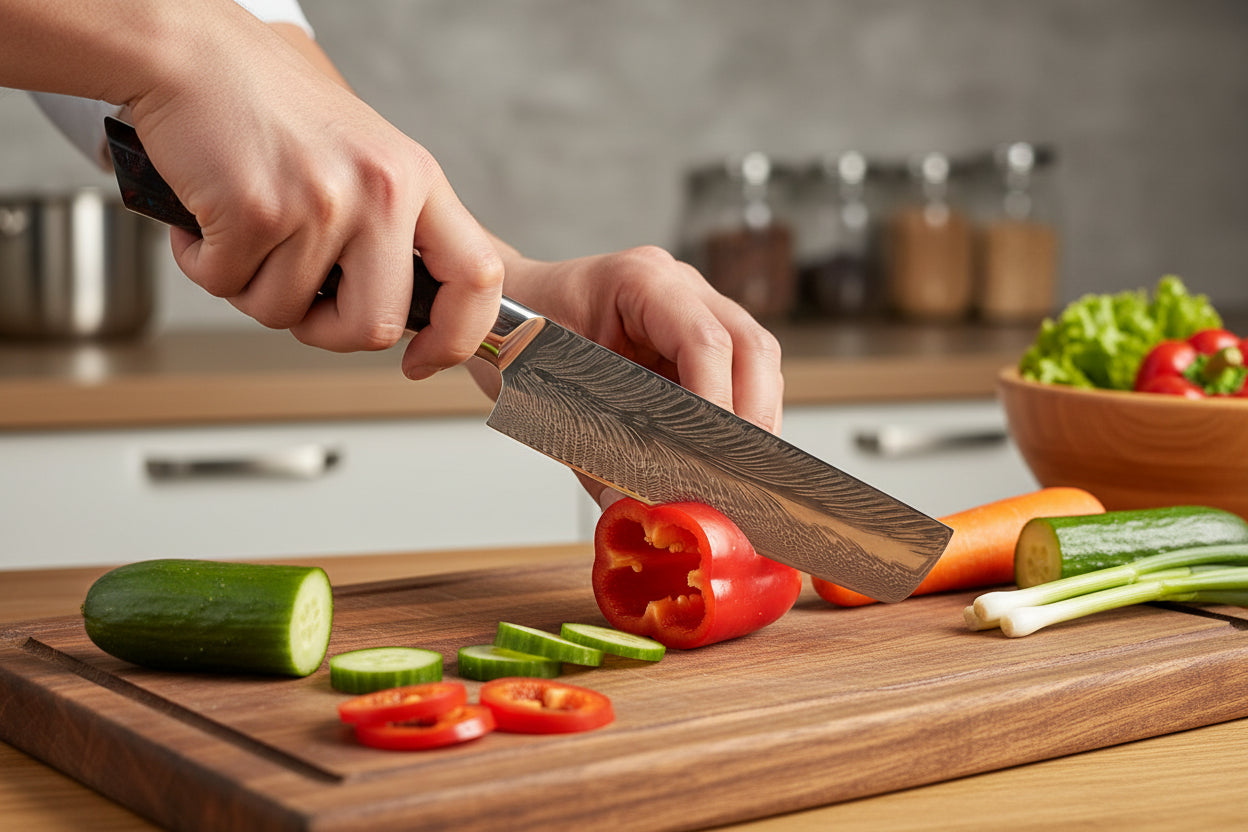 Chez Kensei Kaizen™, chaque couteau est pensé pour ceux qui aiment sentir la lame glisser, contrôler chaque découpe, et prendre fierté dans ce qu’ils préparent.