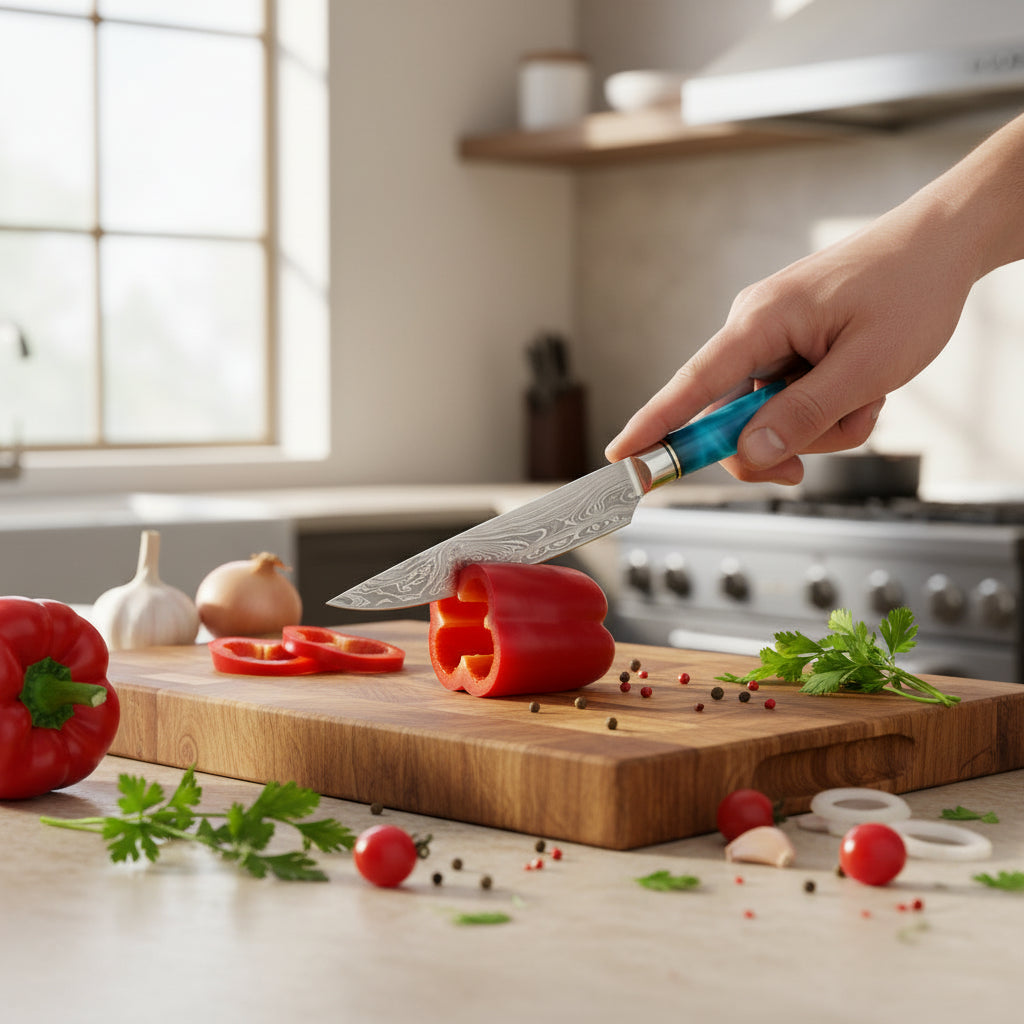 Chez Kensei Kaizen™, chaque couteau est pensé pour ceux qui aiment sentir la lame glisser, contrôler chaque découpe, et prendre fierté dans ce qu’ils préparent.