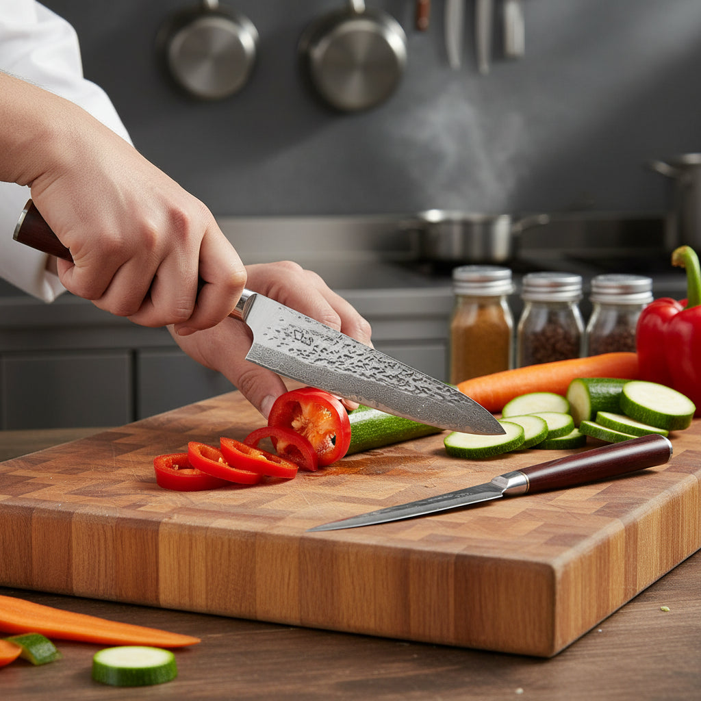 Chez Kensei Kaizen™, chaque couteau est pensé pour ceux qui aiment sentir la lame glisser, contrôler chaque découpe, et prendre fierté dans ce qu’ils préparent.