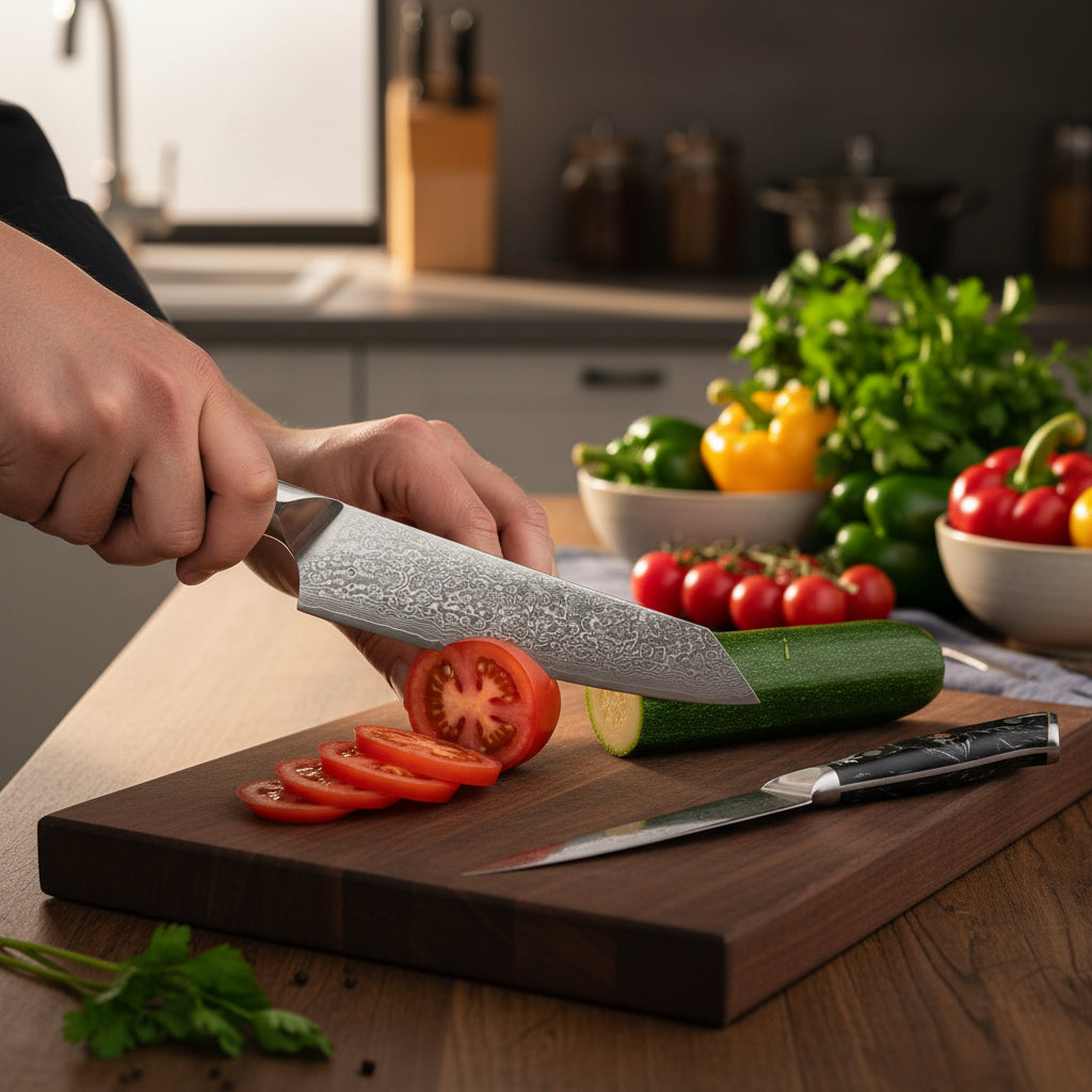 Chez Kensei Kaizen™, chaque couteau est pensé pour ceux qui aiment sentir la lame glisser, contrôler chaque découpe, et prendre fierté dans ce qu’ils préparent.
