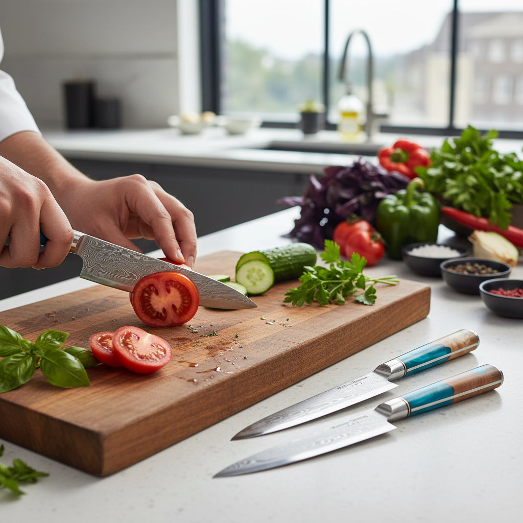Des couteaux pensés pour la découpe nette, l’équilibre en main et des finitions premium. Une expérience “couteau pro” au quotidien.
