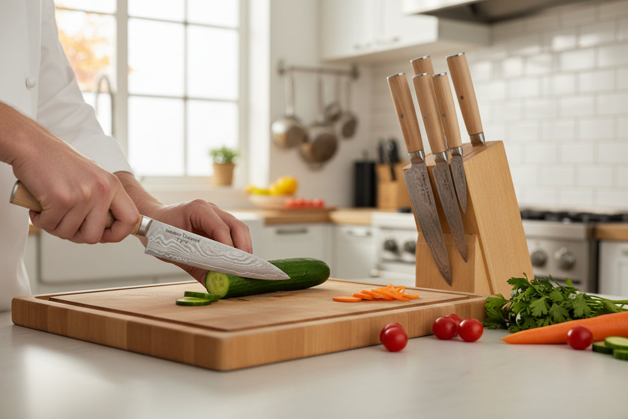 Des couteaux pensés pour la découpe nette, l’équilibre en main et des finitions premium. Une expérience “couteau pro” au quotidien.